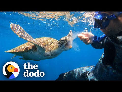 Sea Turtle Shares His Jellyfish With A Diver | The Dodo
