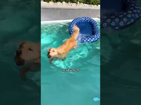 Golden Retriever Uses His Mom's Raft To Save His Ball From Pool | The Dodo