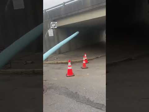 Worker Kicks Pipe Lining Causing it to Almost Expand onto Interstate 🫨 (🎥: Steverlain/ViralHog)