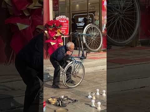 Talented Street Performer Balances Bike On His Chin ππ (π₯: ViralHog)