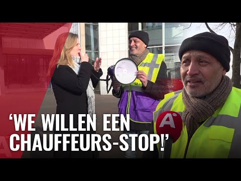 Taxiprotest bij Stopera, chauffeurs juichen voor wethouder Van der Horst