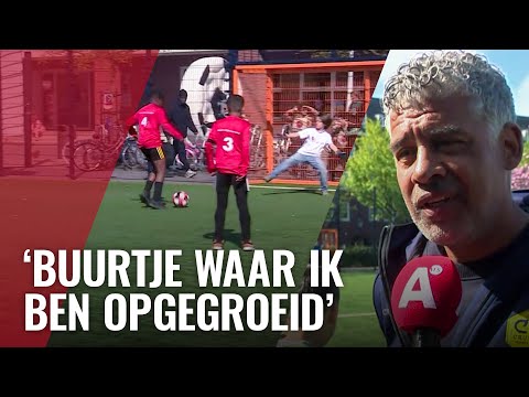 Frank Rijkaard bij start Amsterdamse straatvoetbaltoernooi