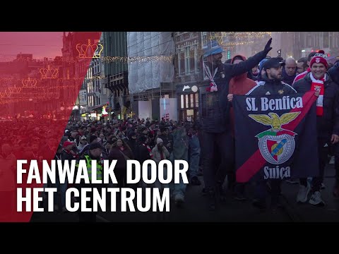 Zingende Benfica-fans op Damrak